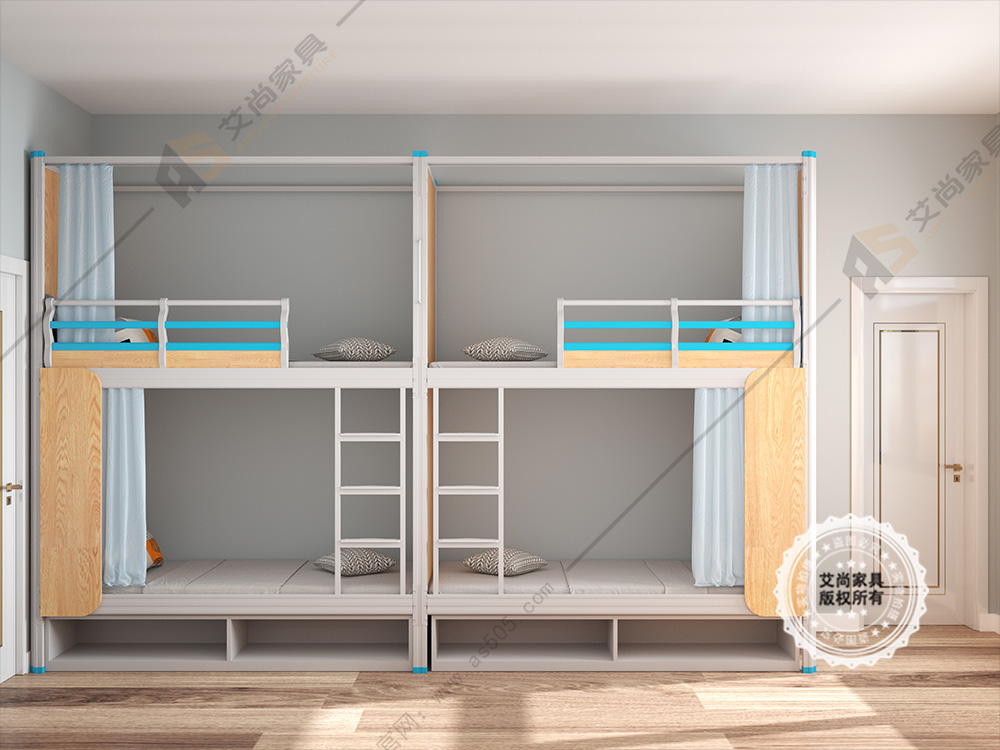 艾尚家具首頁員工宿舍床都由優質冷軋鋼制成的,而且采用的是中空異形管材,而不是市面上普通的方管或圓管,美觀耐用!全卡扣式結構設計,區別于采用螺絲連接的傳統鐵床,避免了安全隱患和產生噪音。拆裝方便,安裝一張床僅需3分鐘,便于物流運輸。