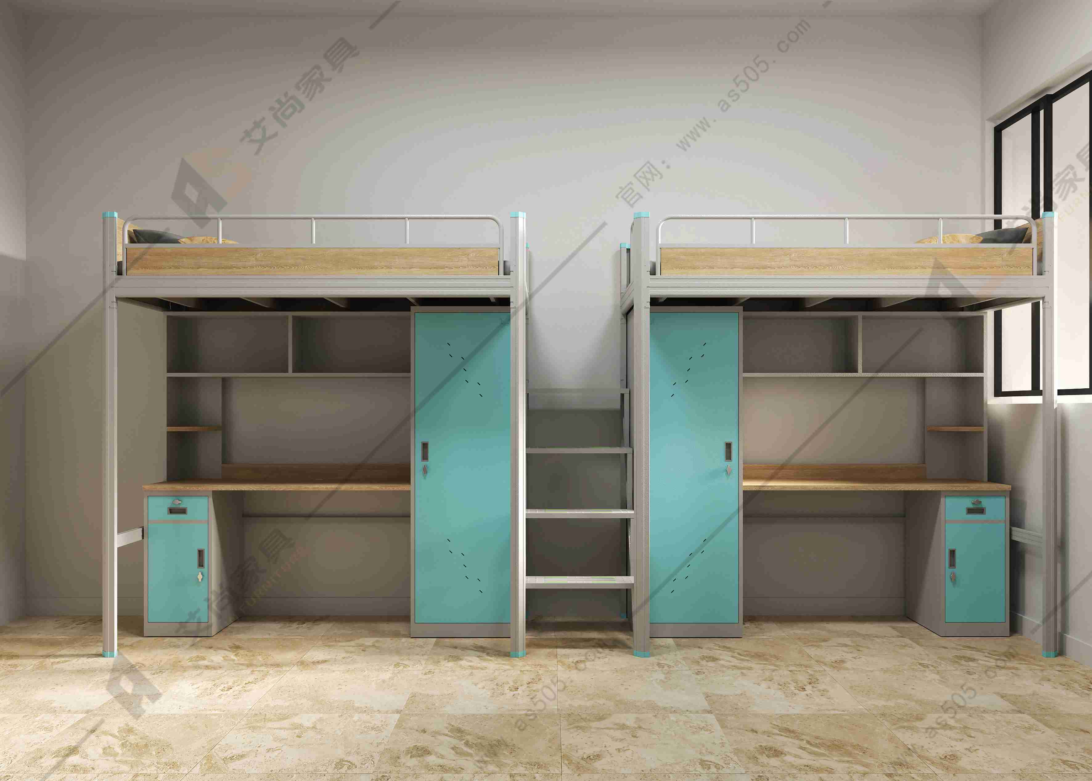 廣東艾尚家具生產的宿舍公寓床采用冷軋鋼制成,不帶一顆螺絲,卡式連接,靜音牢固,杜絕噪音。樓梯表面凹凸紋設計,防滑性較好,質量可靠,穩固性好!上下床采用的型材都做了防腐蝕處理,即使在潮濕的地方也不易生銹。中空異形材,立柱橫梁都是內外噴塑,不生銹,更環保。