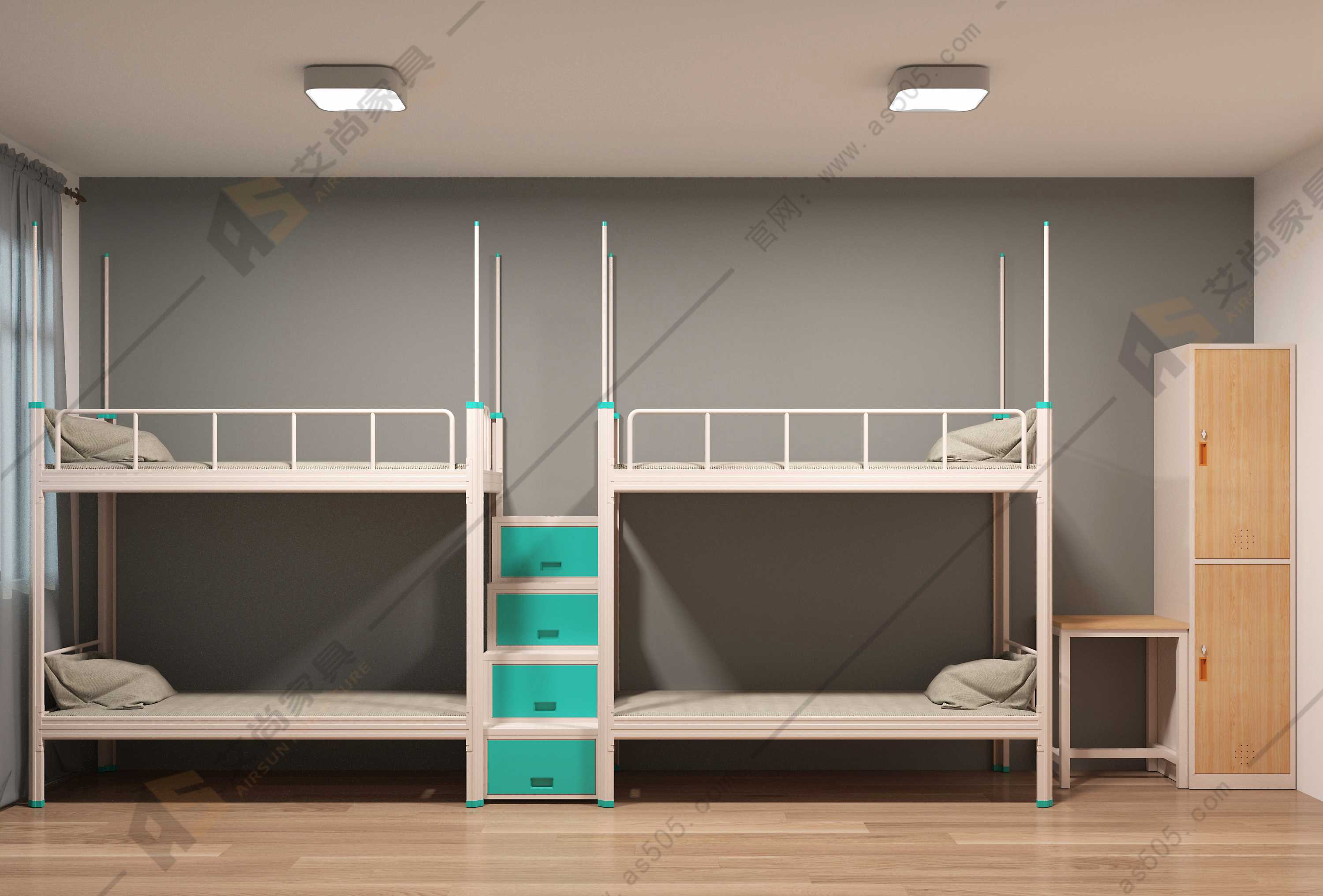 上下鋪鐵床節省空間,適合多人的集體宿舍, 上下鋪鐵床可配備蚊帳桿、衣柜、書桌、等來優化宿舍空間,床下也可配備鞋柜,抽屜等,讓生活環境更加美觀。這些家具無論放置在房間內的任何地方,都可以靈活地節省較小房間的空間。