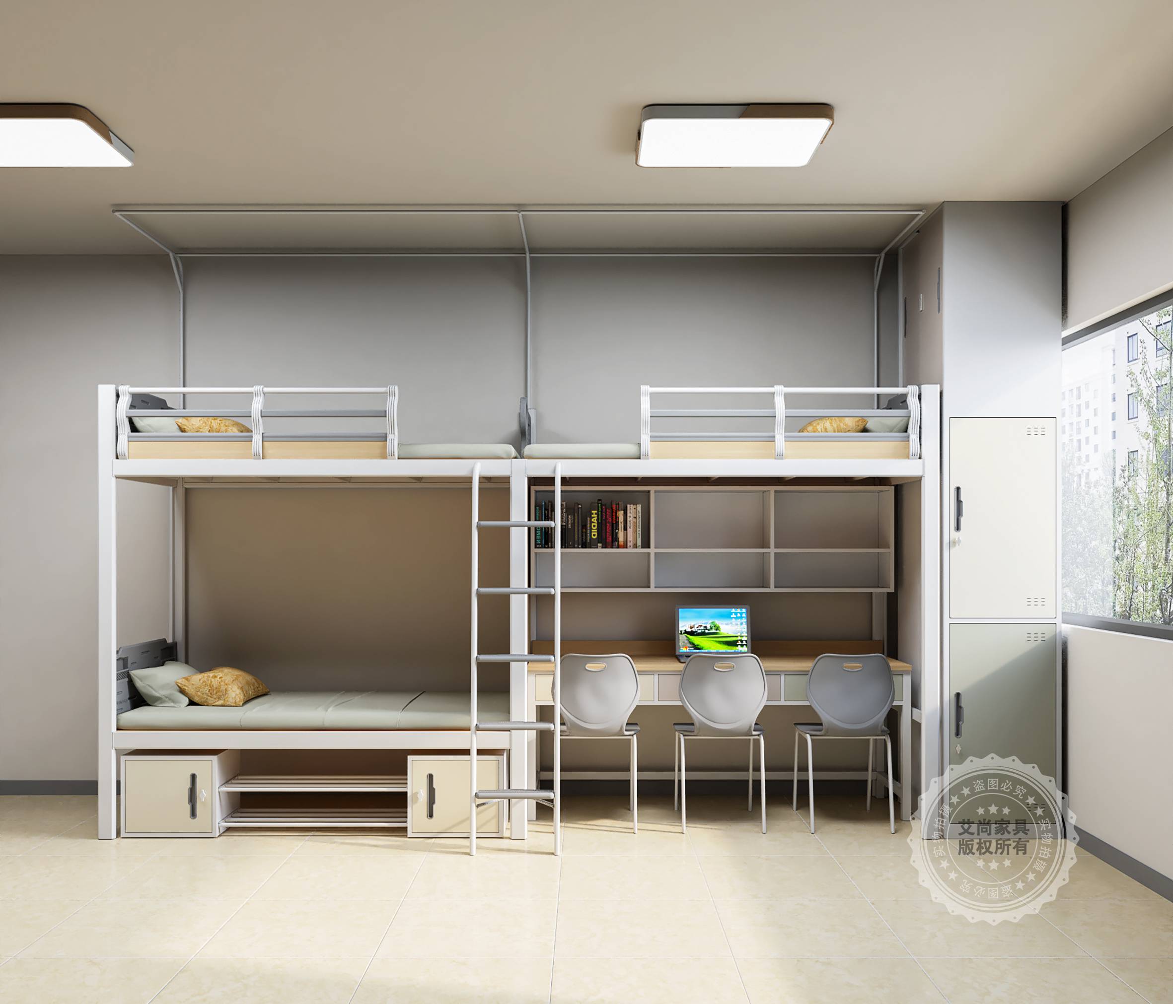 宿舍空間有限,但需求無限!定制服務可以根據宿舍的實際尺寸,靈活設計床的長、寬、高和結構。比如,艾尚家具的上床下桌一體床、兩連體床,不僅能節省空間,還能為學生打造專屬的學習區和儲物區,瞬間讓宿舍變得寬敞又整潔!