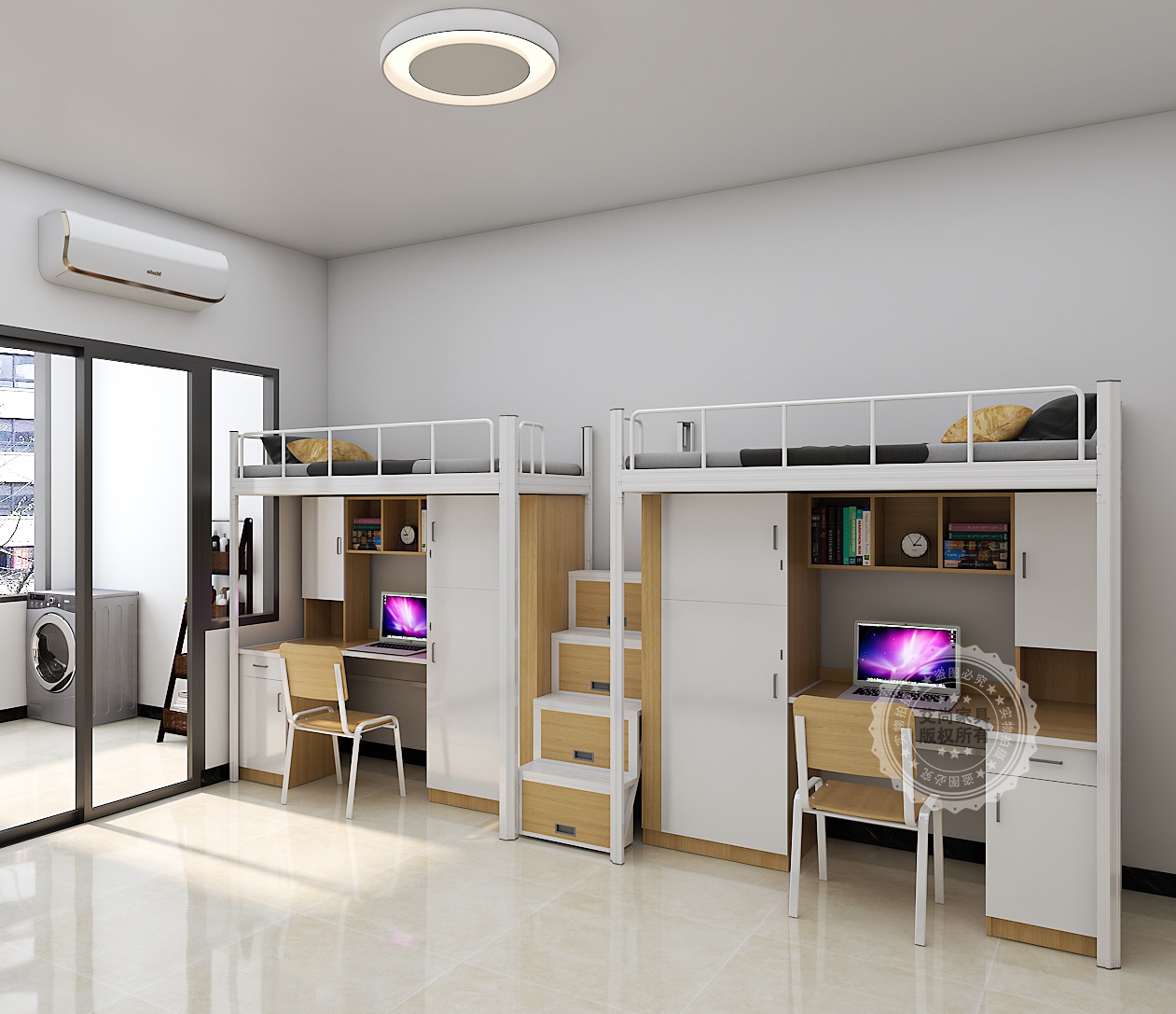 宿舍空間有限,但需求無限!定制服務可以根據宿舍的實際尺寸,靈活設計床的長、寬、高和結構。比如,艾尚家具的上床下桌一體床、兩連體床,不僅能節省空間,還能為學生打造專屬的學習區和儲物區,瞬間讓宿舍變得寬敞又整潔!