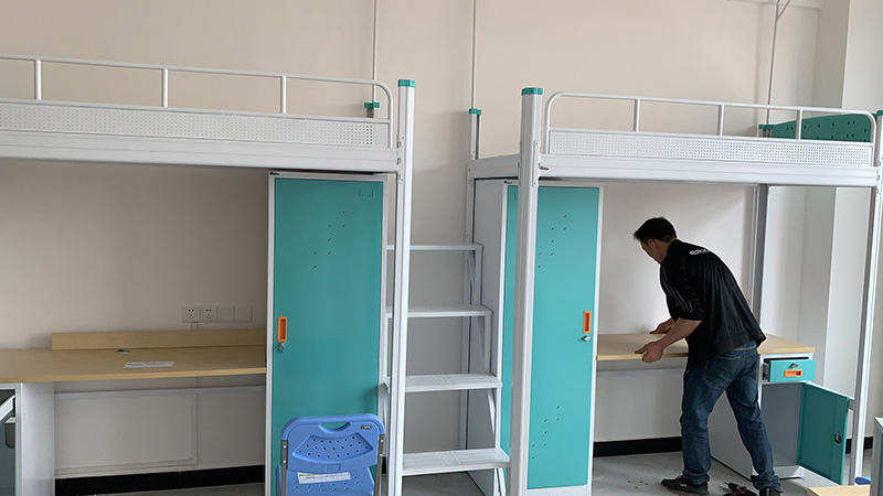 從免費上門測量尺寸→免費規劃宿舍→免費出產品設計圖紙→客戶下單→車間生產→產品出貨→產品安裝→廠家質保十年