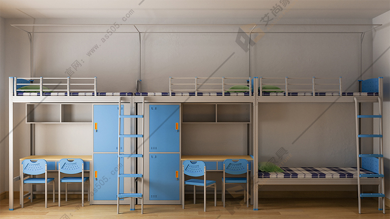 產品介紹: 三連體側梯四人位多人組合式雙層公寓床,產品常規尺寸5890長900寬2100高mm(可按照客戶宿舍需求定制尺寸),產品整體顏色:白色床架搭配藍色柜子(可根據客戶喜好定制顏色),原材料采用優質冷軋鋼板經特制成型線軋制而成,其立面為中空異形,立柱正面和側面有加強筋,材料厚度為1.2mm(國標)床體承重500-1000kg!產品采用紙箱包裝減少運輸途中受損,產品主要適用于企業、工廠、學校8人間宿舍,本產品質保十年!
