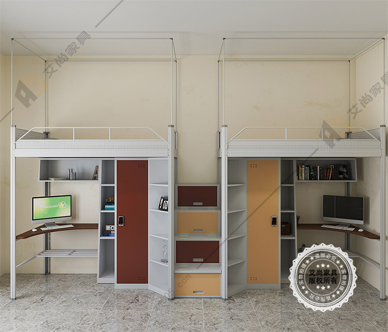 產品介紹: 艾尚家具外貿公寓床外觀上高端大氣,并且安全舒適。外貿公寓床采用環保0甲醛烤漆,無論悶熱潮濕都恍然如新。 廣東艾尚家具的推出公寓床都是采用無螺絲卡扣式銜接設計,利用重力向下,床架間的卡扣掛件就會向下與床架卡的越緊,用得越久越牢固,款式尺寸可以根據客戶需求或宿舍空間專屬定制。