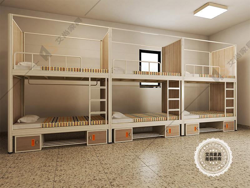 產品介紹: 艾尚家具鋼制鐵架床外觀上高端大氣,并且安全舒適。鋼制鐵架床采用環保0甲醛烤漆,無論悶熱潮濕都恍然如新。 做工設計上,鋼制鐵架床采用卡口式連接,這種連接的優點在于承重性強,穩固性好,上床時非常平穩,不易搖晃,安全舒適,可以適應各種宿舍。
